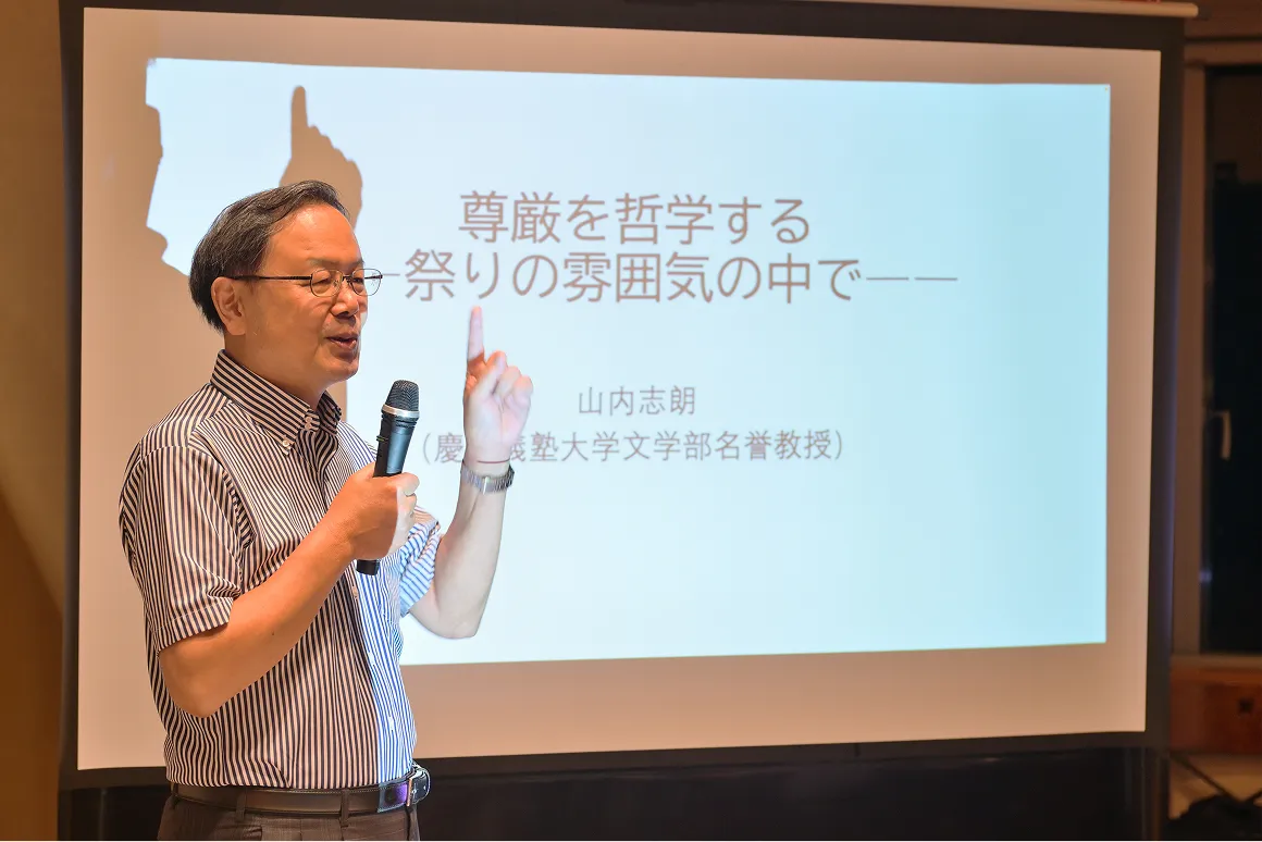 ラウンジの前半では、慶應義塾大学文学部 名誉教授で哲学者の山内志朗氏がゲストスピーカーとして登壇し、「尊厳を哲学する――祭りの雰囲気の中で」と題して講演を行った。