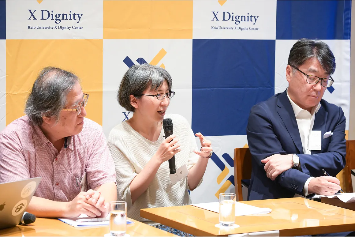 「遊びと人間の尊厳ラウンジ」は学問領域や大学内外の垣根を超え自由に開かれた議論の場としてつくられたX Dignityセンターの目玉企画のひとつで、2025年6月に続き2回目の開催となる。今回の司会は慶應義塾大学文学部教授の徳永聡子氏が務めた。