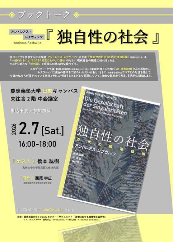 【開催案内】[ブックトーク]アンドレアス・レクヴィッツ『独自性の社会』(2026年2月7日)